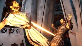最后一幕,你需要面对几名手无寸铁的罪犯。你可以选择放过他们,或者将他们处决。如果你选择放过他们,那么在主线任务结束时,加迪洛斯依然会呼唤士兵射杀他们。而如果你选择处决他们,加迪洛斯则会为你欢呼喝彩。这个选择将直接影响你的形象和声誉。
