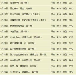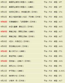 在这个充满期待的四月份,PS4游戏发售表上的这些佳作无疑为玩家们带来了丰富的游戏体验。无论是喜欢动作冒险的玩家,还是喜欢角色扮演的玩家,都能在这份发售表中找到自己心仪的游戏。让我们一起期待这个月份的到来,尽情享受游戏带来的欢乐吧!